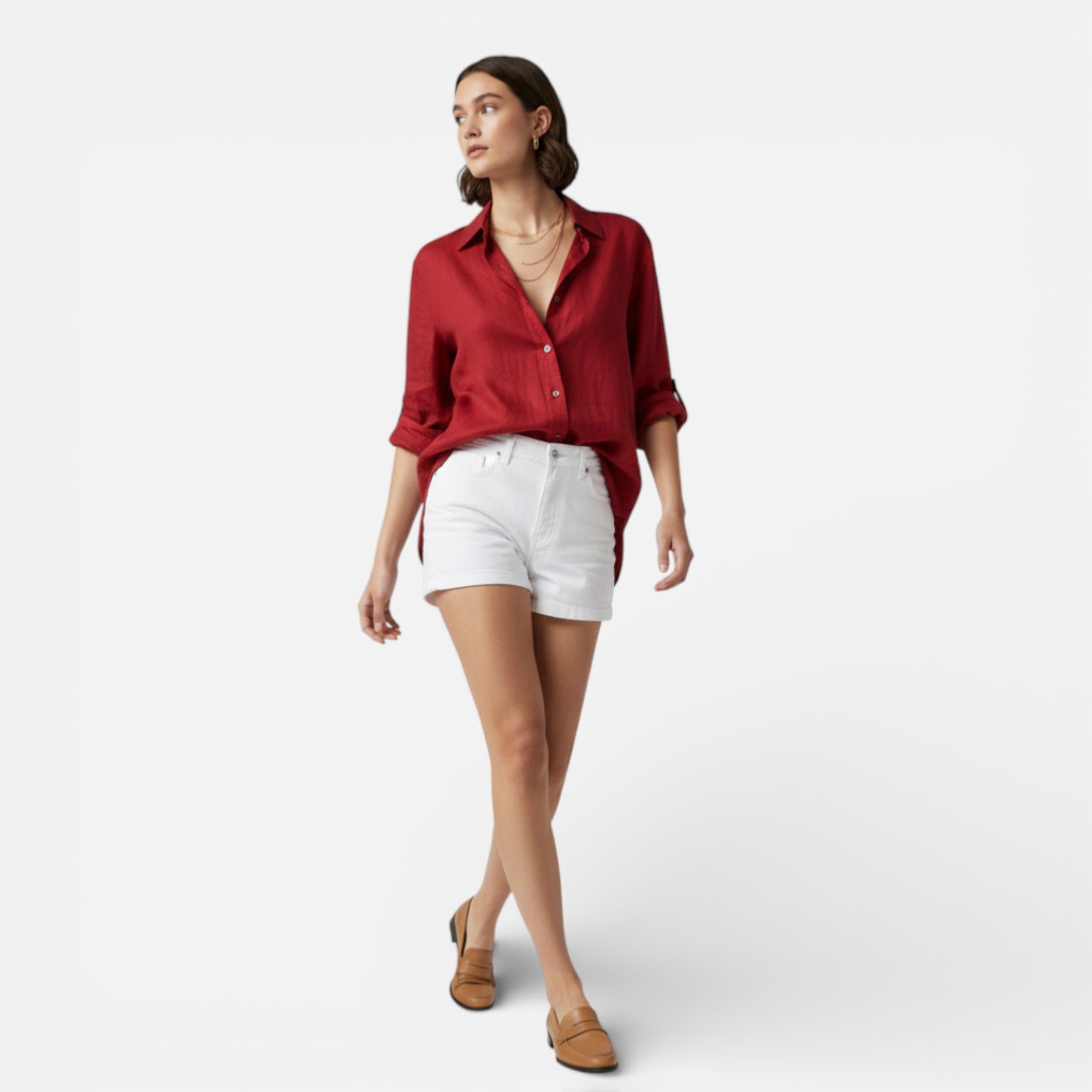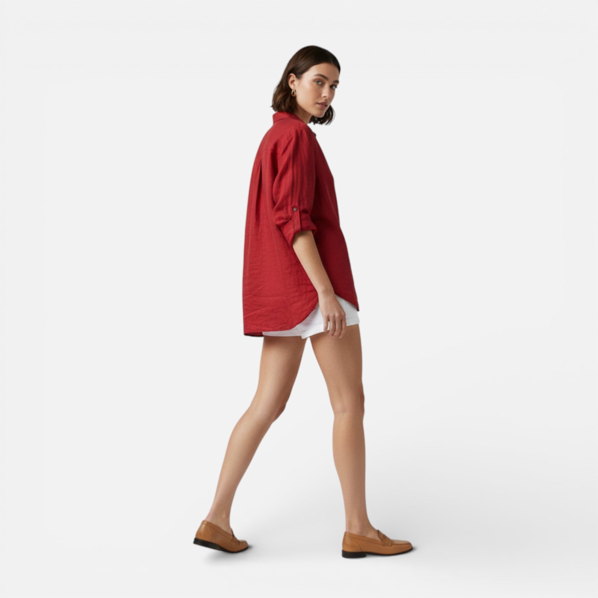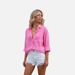 Imagine stepping into Your day in lightweight fabric that moves with grace and ease. This blouse is designed for the woman who values timeless style paired with practical details. Your wardrobe deserves pieces that feel polished yet comfortable, offering an elegant collar and subtle pockets that combine utility with sophistication. The linen-cotton blend creates a soft, breathable layer perfect for any occasion.